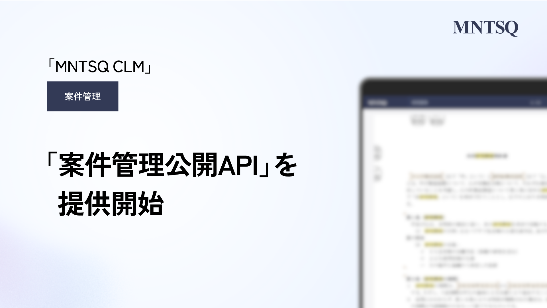 業界を代表する大手企業に導入いただいているMNTSQは、AIと法務の知見を掛け合わせた「MNTSQ 案件管理」の開発と提供をしています。今回、企業様から「いま使っている既存システムとMNTSQの連携をさらに深めたい」とのご要望をいただき、APIの公開を開始しました。