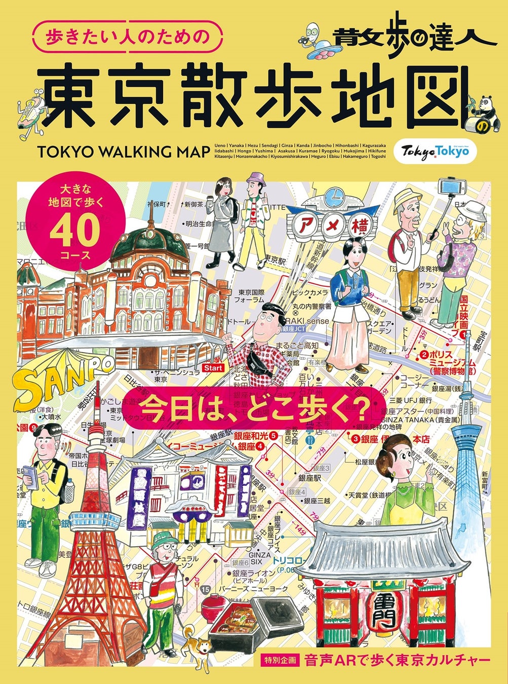 今回の第5弾では山の手・都心・下町の最新40コースを収録。40コースのうち浅草、原宿、両国、池袋の4コースは、『散歩の達人』とエイベックスの音声ARアプリ『SARF』のコラボレーション企画で、アプリから参加できる「新たな一歩と伝統が織りなす東京の音色」のコースと連動したコースを紹介しています。