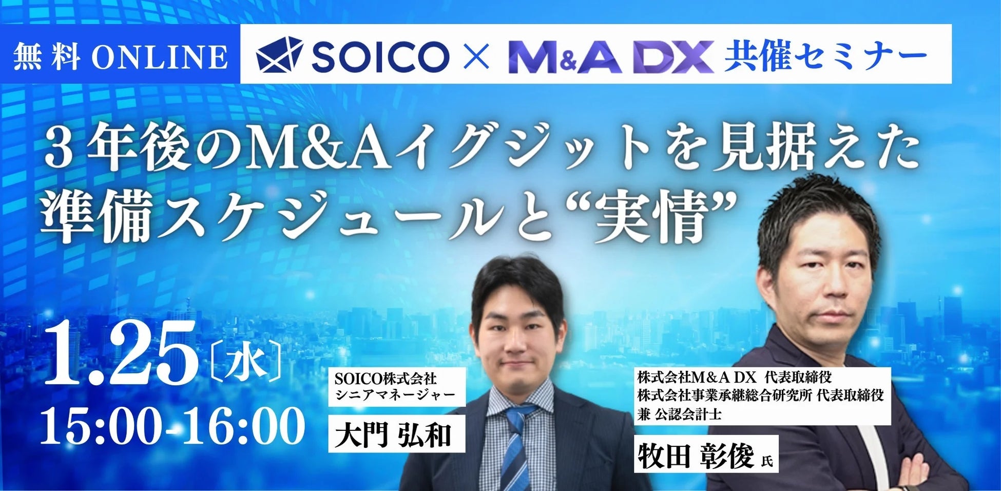 SOICO株式会社と共催する無料オンラインセミナーに、株式会社M&A DXの牧田彰俊が登壇します。