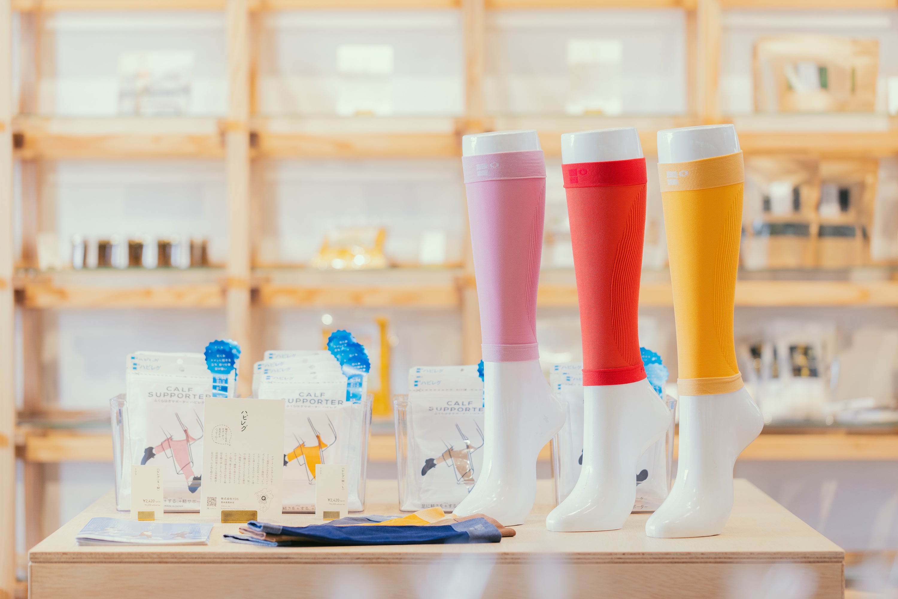 とあるリハビリ施設で、「もっとおしゃれな色があったらリハビリも楽しくなるのでは」と考えた社長とディレクターが、第二の心臓であるふくらはぎに着目し、開発に1年かけたこだわりのサポーターです。