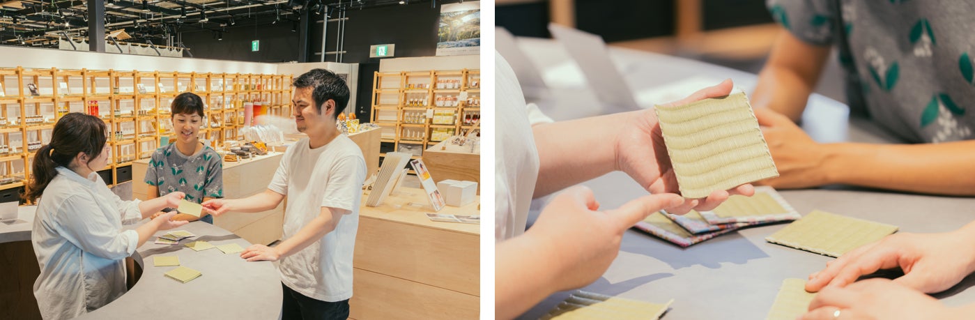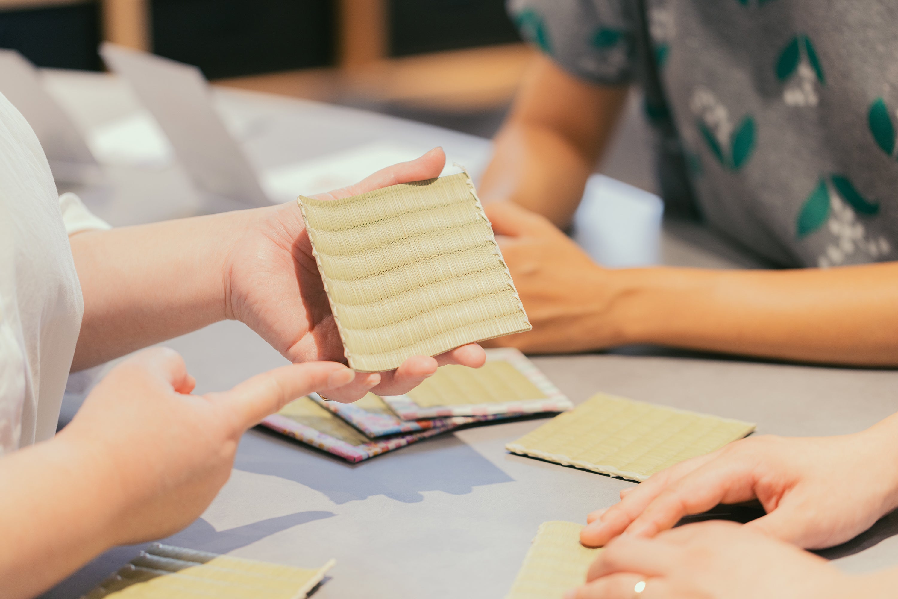 体験コンテンツは、観光シーズンや季節性等の状況に応じて適宜変えていく予定ですが、例えば、熊本のい草から作られた畳をもっと身近に感じてもらいたいという想いから、「畳コースターづくり」を企画中です(写真はイメージ)。自分で作った畳コースターの良い香りに癒やされながら、ご自宅でほのぼのとした時間を過ごしてもらえます。