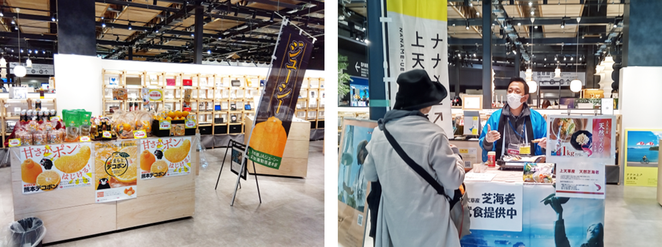 九州の中心地に位置する「阿蘇くまもと空港」を起点に、熊本・九州の「市町村単位」「個別の生産者単位」にスポットを当てて、よりローカルな商品や体験価値を発掘・発信することを目的にQSHU HUBを運営してきました。また、地域活性化を目的にした店舗でもあるので、来店者を各地域へ誘客する動機付けを与えて、熊本および九州にヒトの流れや経済効果を生み出す循環を形成することも目指している店舗です。