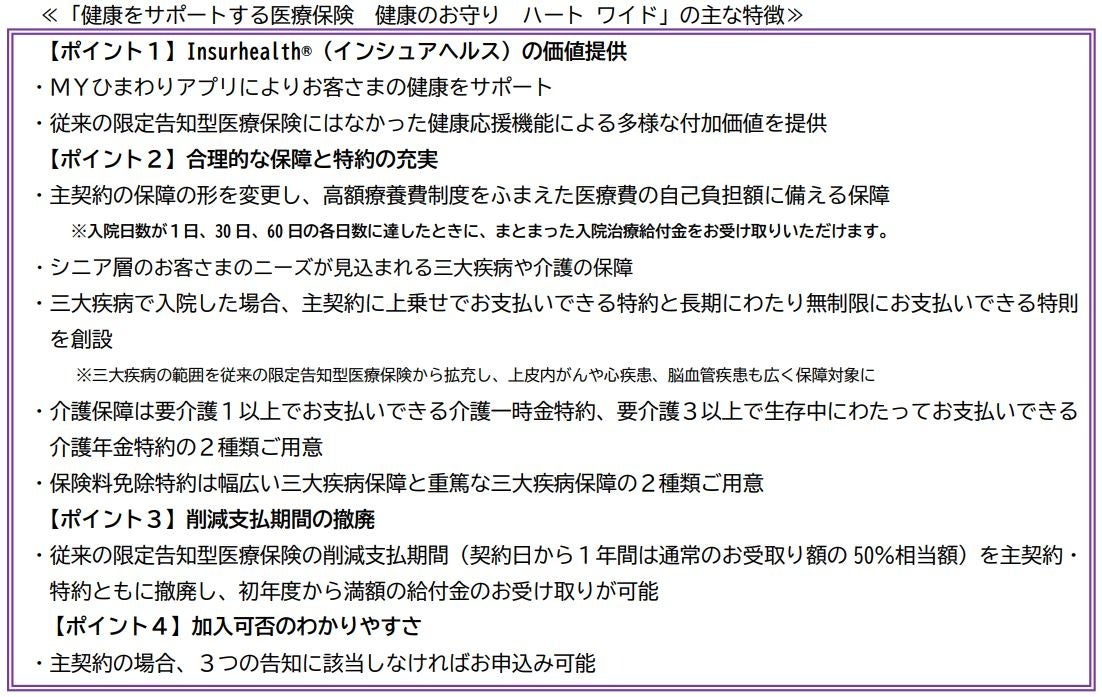 『健康をサポートする医療保険 健康のお守り ハート ワイド』を発売 ~持病があるお客さまにInsurhealth®で寄り添いサポート~
