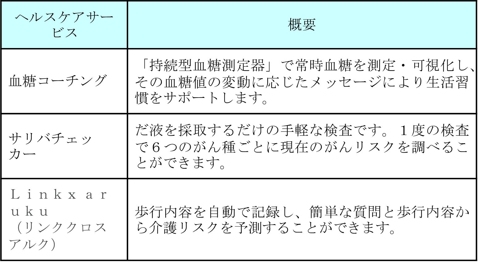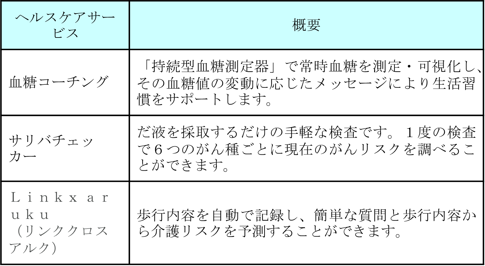 MYひまわりアプリに登録された健康診断結果や日々の健康行動の情報を通してお客さまに最適なサービスをご案内します。ヘルスケアサービスの概要は以下の通りです。