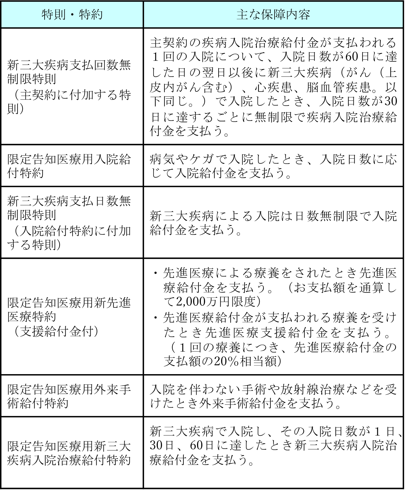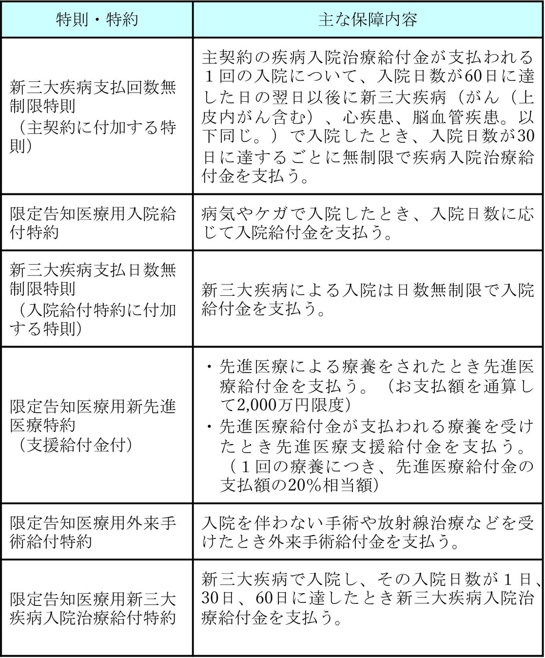 ・高額療養費制度を踏まえた入院時の医療費の自己負担分をカバーする主契約により、シンプルで分かりやすい合