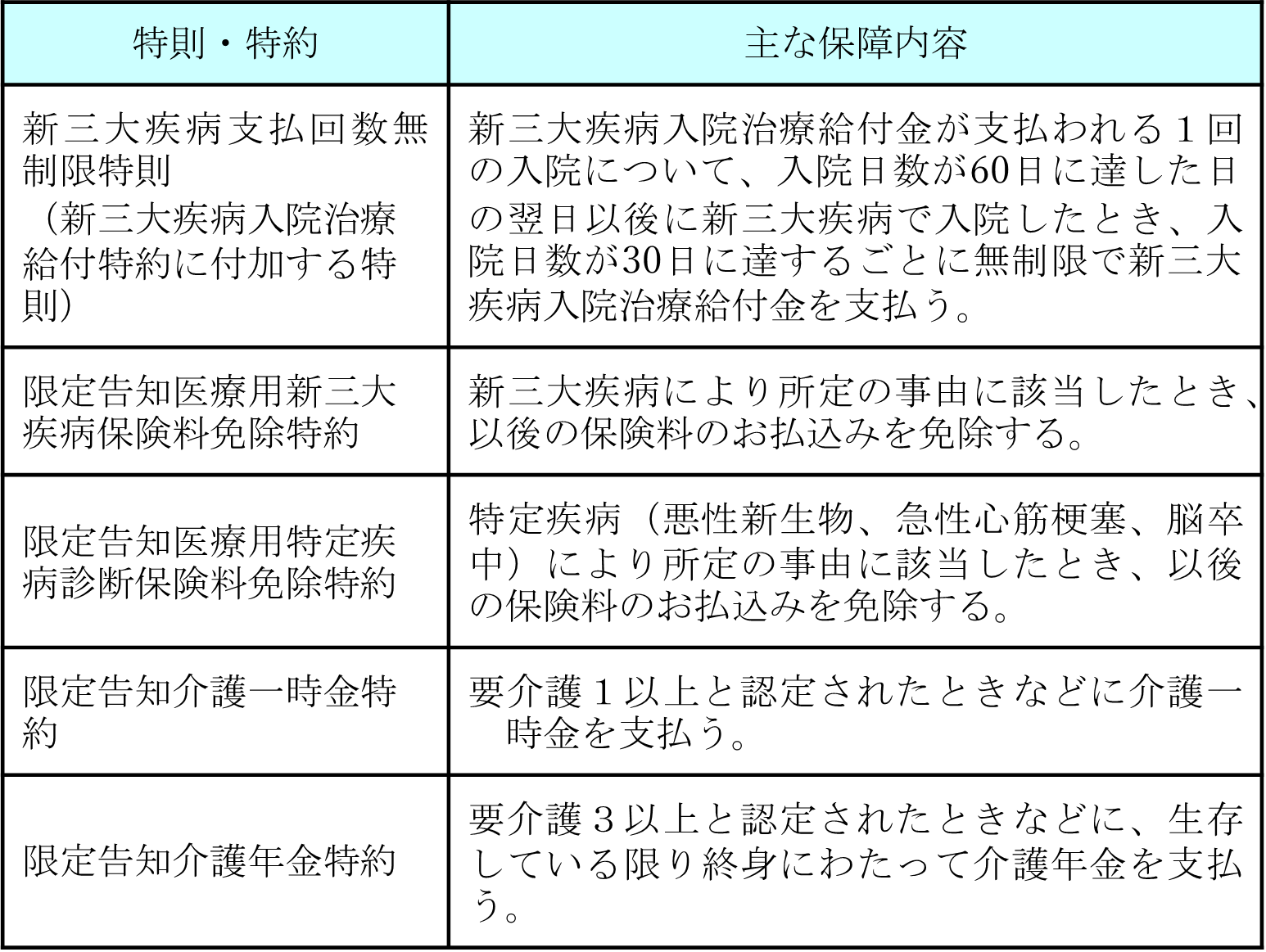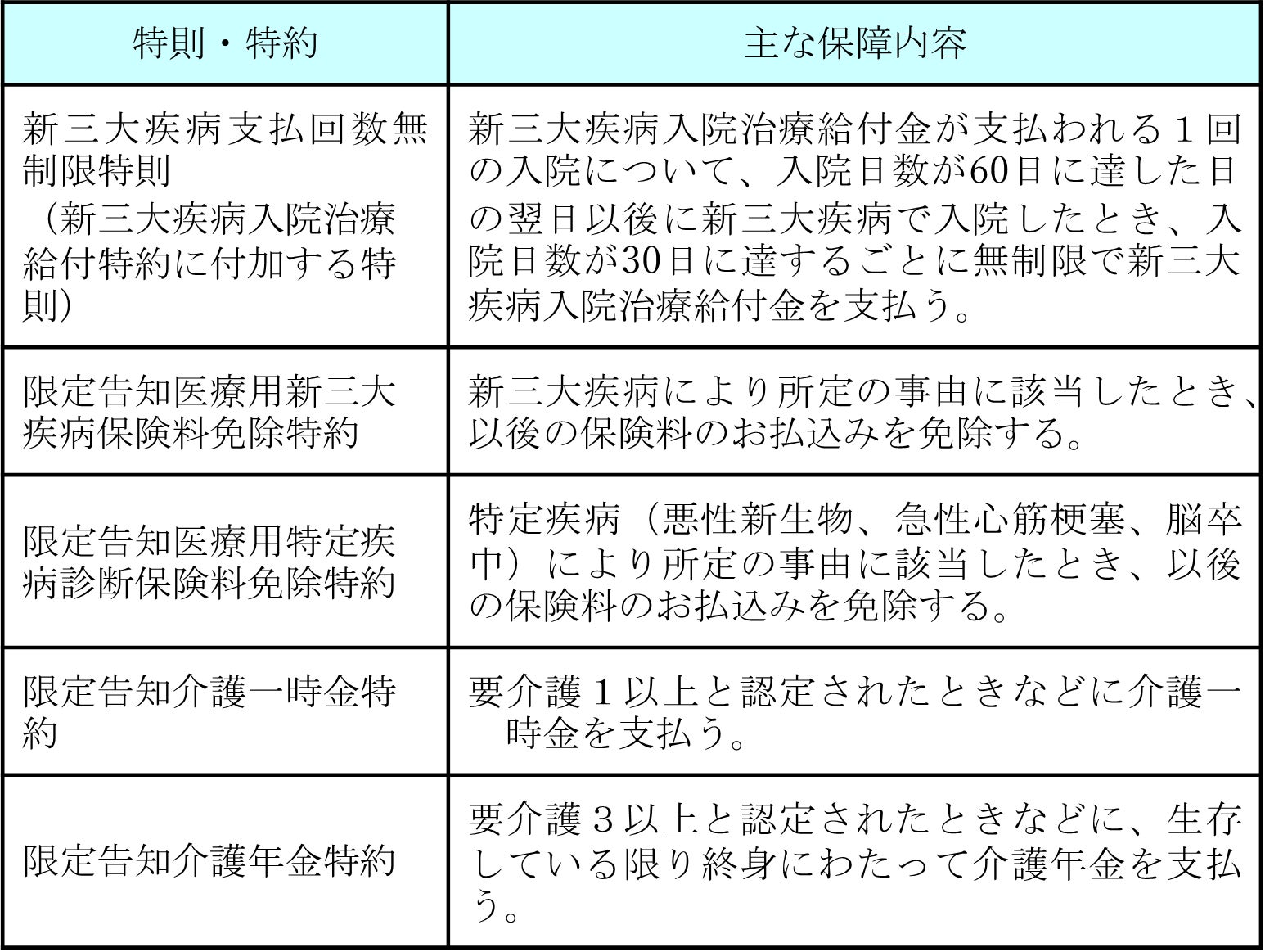 ・充実した特約保障(外来手術保障、先進医療保障、三大疾病保障、介護保障等)
