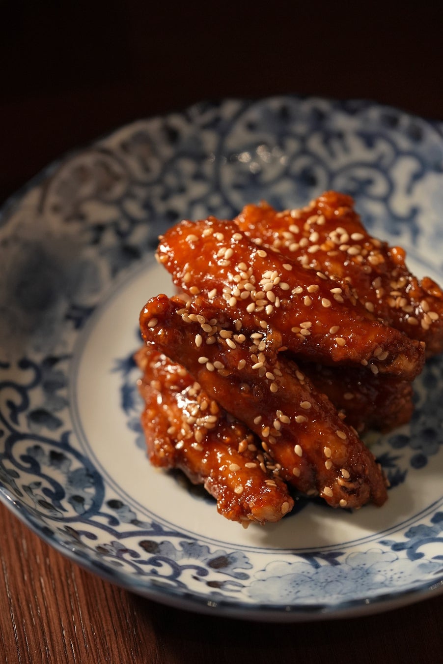 クセになる甘辛いたれはビールやその他のお酒のおつまみとして手が止まらなくなる一品です。