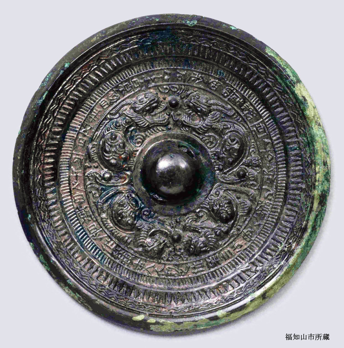4世紀後半の前方後円墳である広峯15号墳から出土した鏡は、斜縁盤龍鏡(しゃえんばんりゅうきょう)と分類されるもので、文様面に実在しない中国(魏)の年号『景初四年(240年)・・』を持つ銘文があることから、古代史の謎である邪馬台国の所在地論争に大きな波紋を投げかけました。