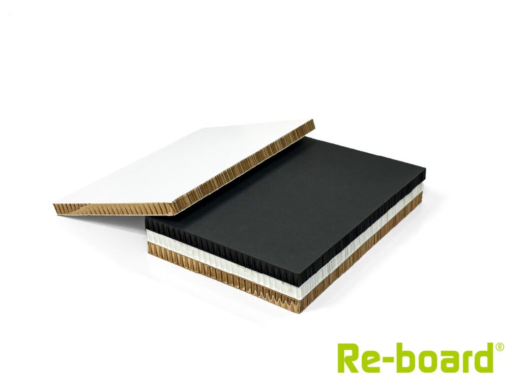 Re-board(リボード)とは、スウェーデンで開発された、軽量ながら非常に高い強度を持つ紙製の厚物ボードです。