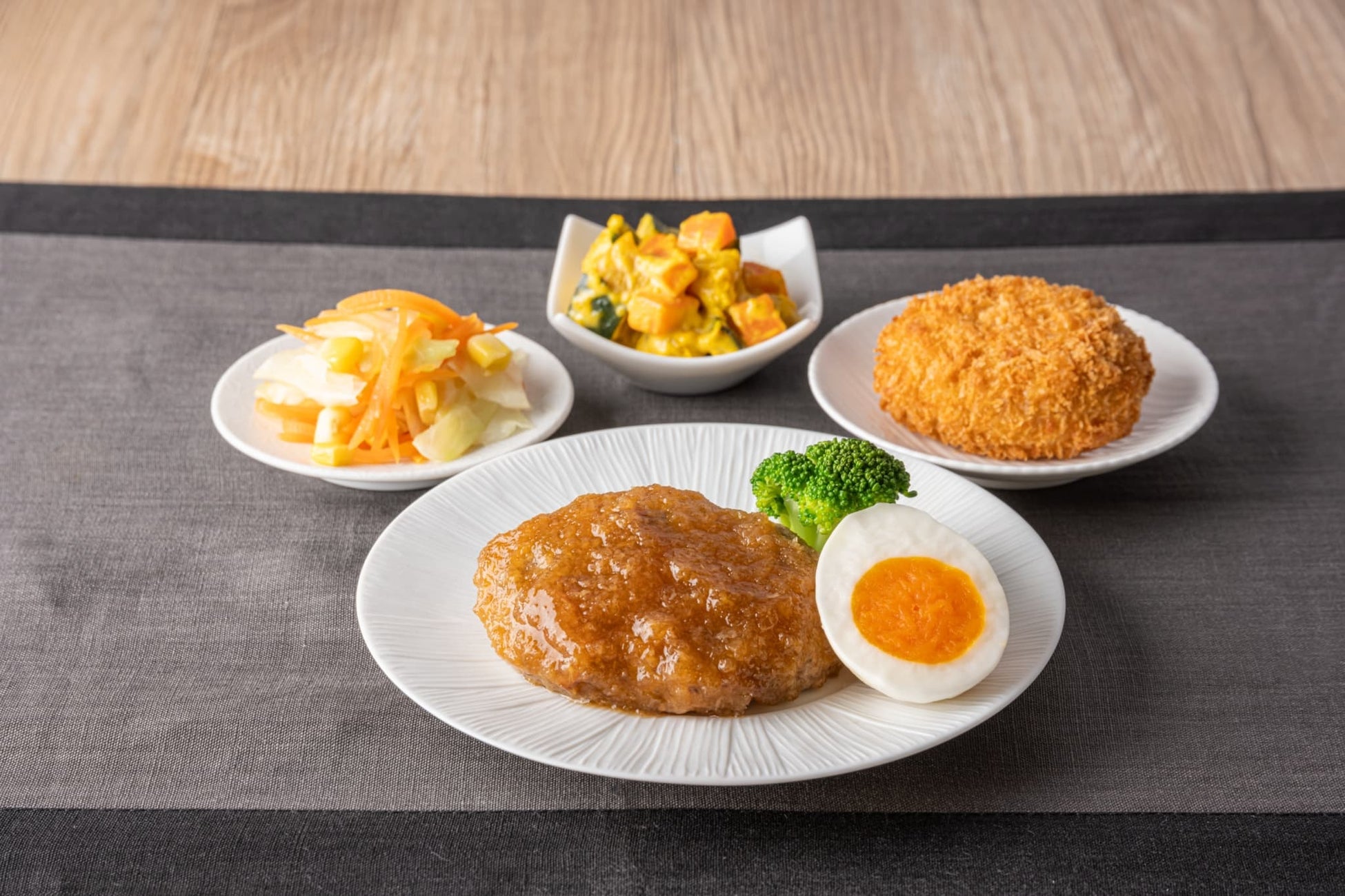 本商品では、肉料理、魚料理、和洋中の幅広いメニュー構成を取り入れ、同じ栄養基準の中でも、