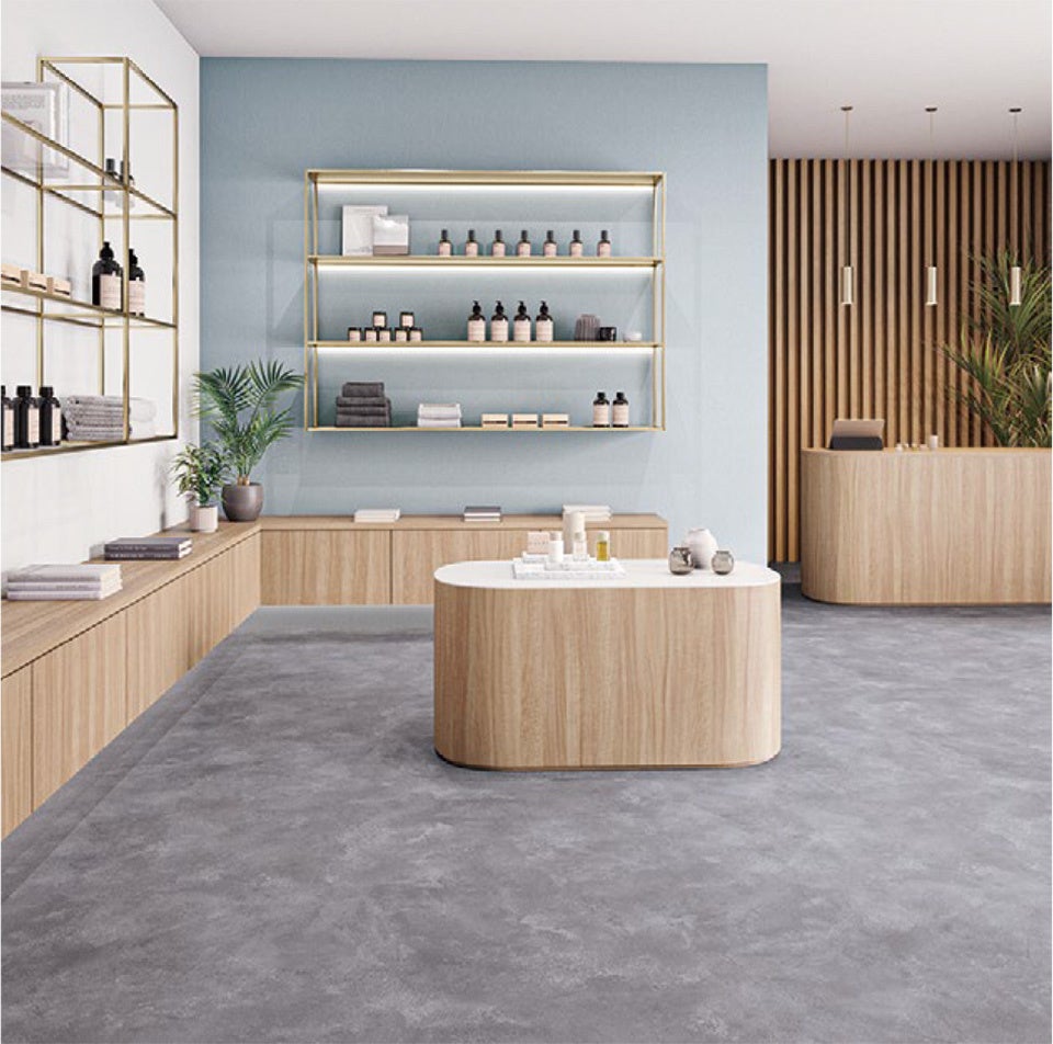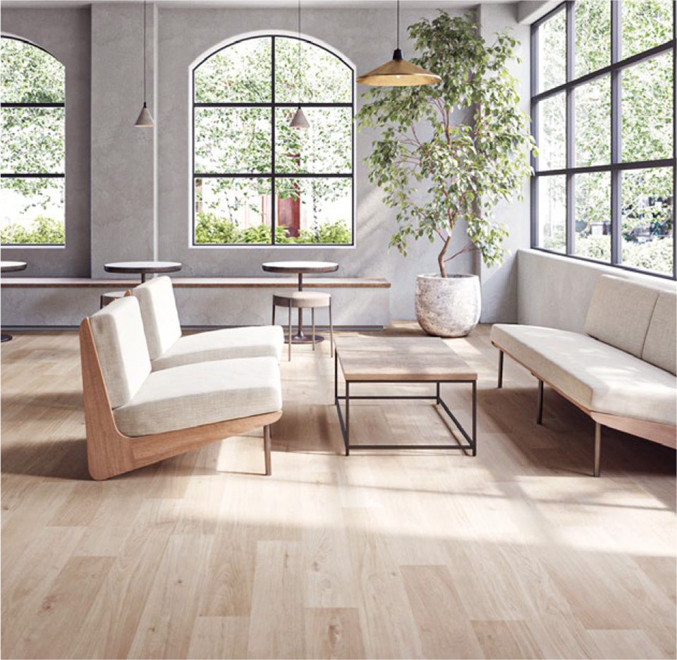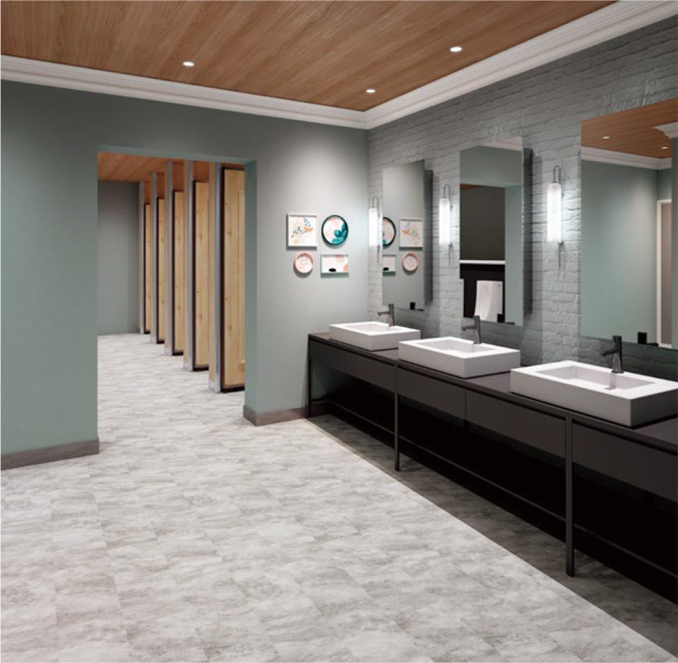 多様な物件に広く使用されるローコスト複層シート「エスリューム」に、ハイクオリティなカテゴリ「エスリューム・ リアル」を新設しました。前見本帳に収録し、高評価をいただいた木目柄「ジャトバウッド」をはじめ、5柄27色の充実したラインアップで、コンクリートやタイル柄、グレイッシュな木目柄といったトレンドをおさえた商品を取り揃えました。また、抗ウイルス・消臭機能に加えて防滑性にも優れた「消臭レストリューム」のラインアップを拡充。トイレをはじめとする水まわり空間にも適しており、より快適に、より長く使える床材に対する需要に応えます。