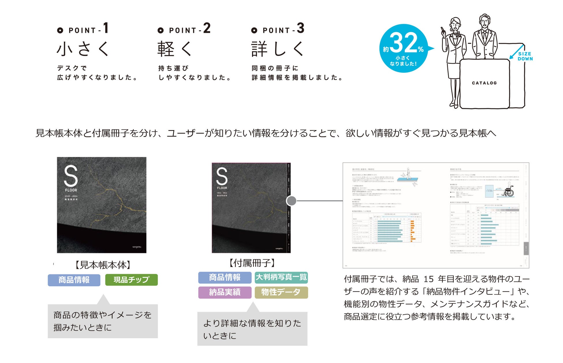 3.掲載情報の整理と小型軽量化により、働き方の変化に合わせた「小さく・軽く・詳しい」見本帳へ