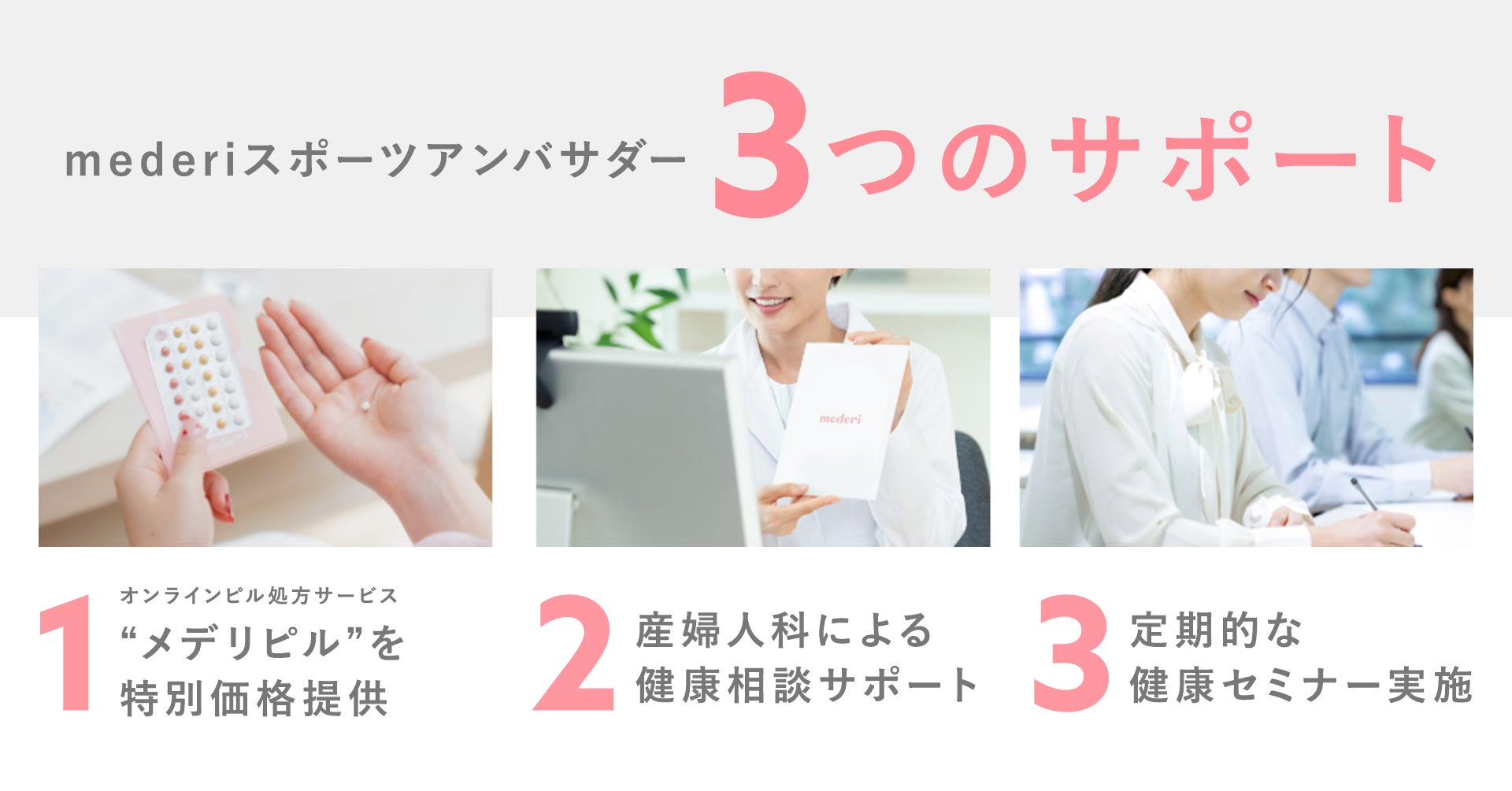オンラインピル診療サービス『mederi Pill(メデリピル)』を展開するmederi株式会社(東京都目黒区、代表取締役:坂梨 亜里咲 以下、当社)は、女子スポーツの発展と女性の健康管理両立をサポートすることを目的とした、プロ・アマの女子スポーツチーム・個人を対象の「mederiスポーツアンバサダー」を展開しています。2023年の活動結果を報告するとともに、2024年のリニューアルスタートを告知いたします。