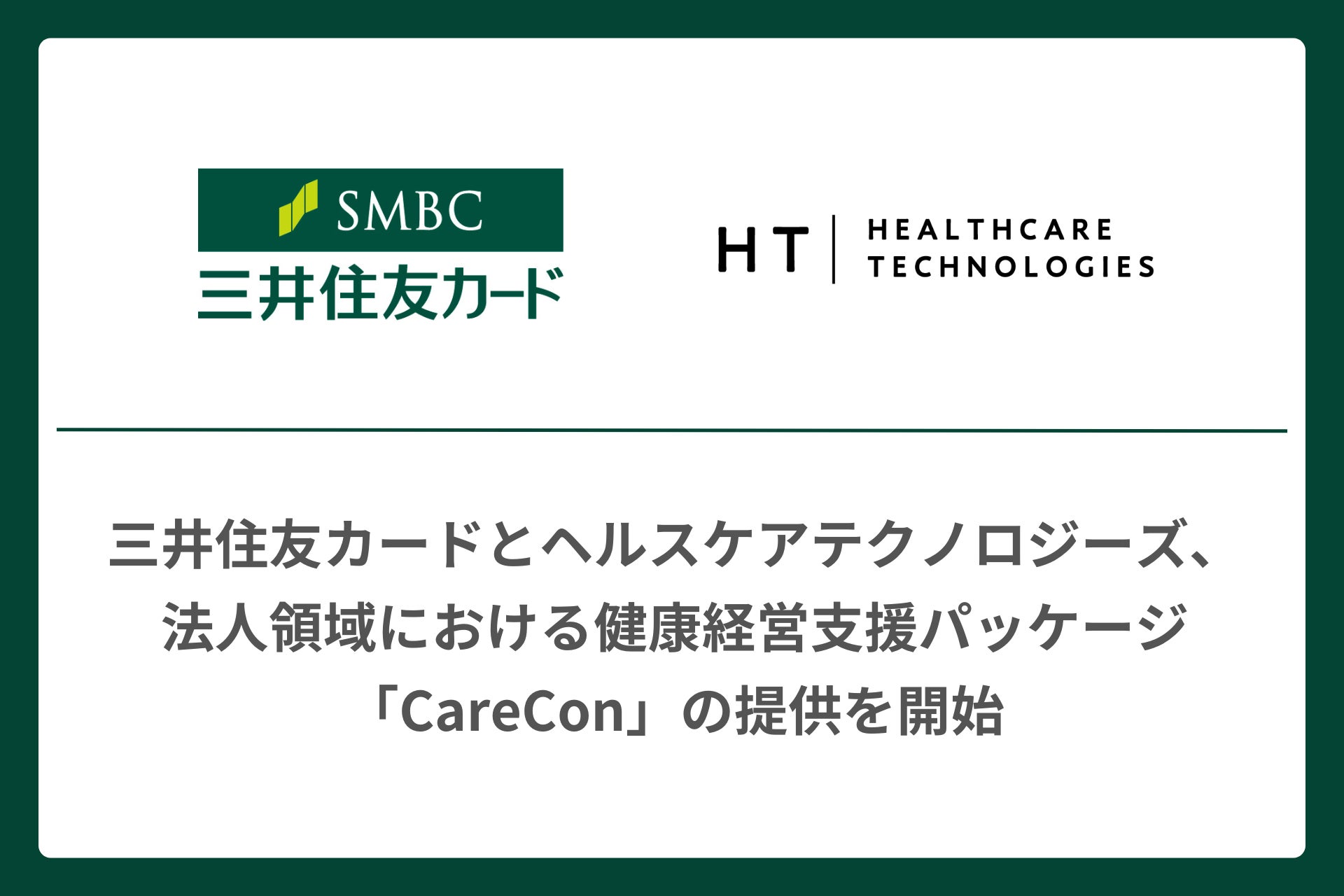 三井住友カード株式会社(本社:東京都江東区、代表取締役 社長執行役員 CEO:大西 幸彦、以下「三井住友カード」)とヘルスケアテクノロジーズ株式会社(本社:東京都港区、代表取締役社長 兼CEO:鴻池 大介、以下「ヘルスケアテクノロジーズ」)は、中小企業向け法人領域における健康経営支援パッケージ「CareCon(ケアコン)」(以下「本パッケージ」)の提供に関する業務提携契約を締結いたしました。2025年9月25日より、三井住友カードのオーナーズカードを保有する企業向けに、本パッケージの提供を開始いたします。