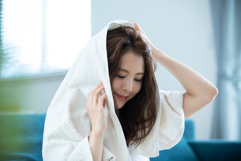 濡れた状態の髪の毛は、キューティクルが開いた状態のためとてもデリケート。