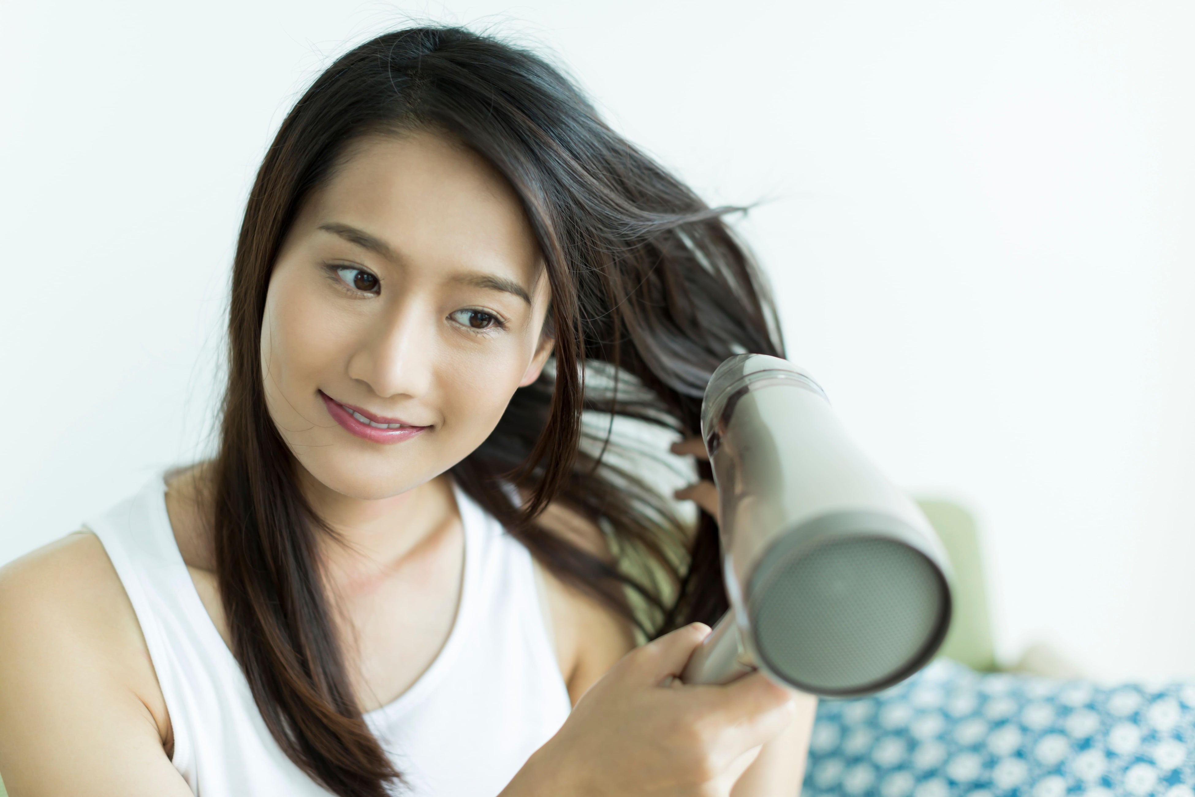 ①ドライヤーを髪の毛から15センチ程度離し、根元から中間、毛先の順に乾かす