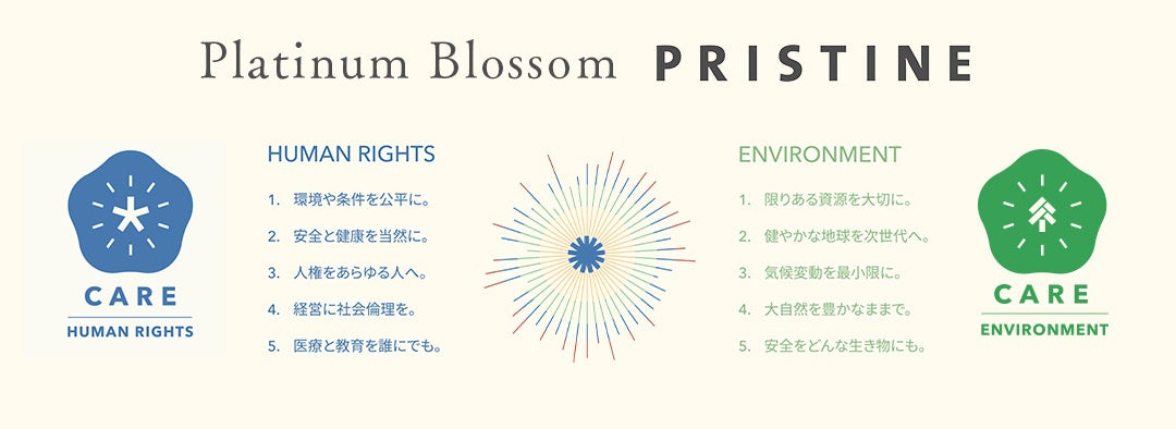 プリスティン、製品が環境に配慮してつくられた証 「CARE認証 ENVIRONMENT」(環境部門)でプラチナブロッサムを取得 世界初、人権・環境の2部門での最高評価