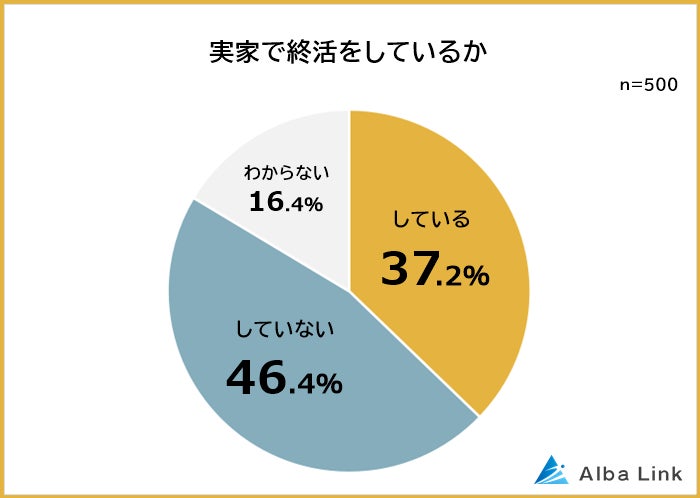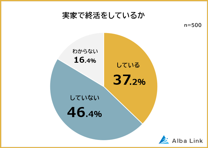 ただ最も多かったのは「していない(46.4%)」です。「実家で終活しているかわからない」という回答も多く、実家の両親が終活をしているか聞けていない人や具体的に動けていない人も多いとわかります。