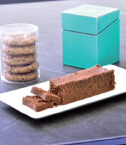 フワフワと浮く天使の羽の様な食感で、濃厚なチョコレートの風味が口の中で溶けながら広がる拘りのテリーヌショコラ。チョコレートには、サステナブルな方法で調達した材料で作られたスイス産クーベルチュールを100% 使用。フレーバーはスイート、ミルクと季節限定マスカットの3種。