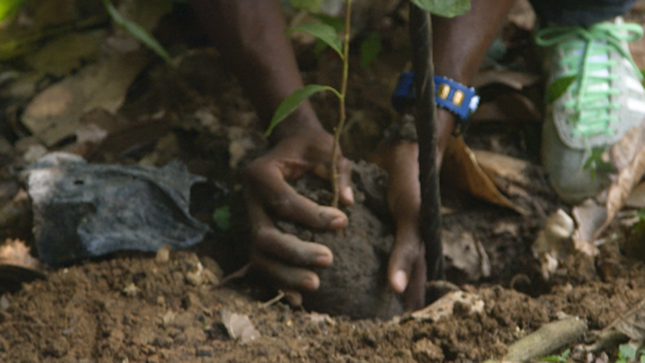 カカオの主要産地であるコートジボワールでは急速な森林の減少が進行。カカオの実は 直射日光を好まない為、カカオの生育にはカカオの木よりも背の高い豊かな森が必要です。そこでimperfectでは農家の方々と一緒に、シェードツリー(日陰樹)の苗木を植え、 森を再生するプロジェクトに取り組んでいます。直射日光のあたるカカオの木は寿命が25~30年程度といわれますが、これらの常緑樹がカカオの木に日陰を作ることで50~80年は収穫できるようになるといわれており、カカオの森や生態系を守りつつ、カカオ農家の持続的な生産と収入につながる取り組みを進めています。