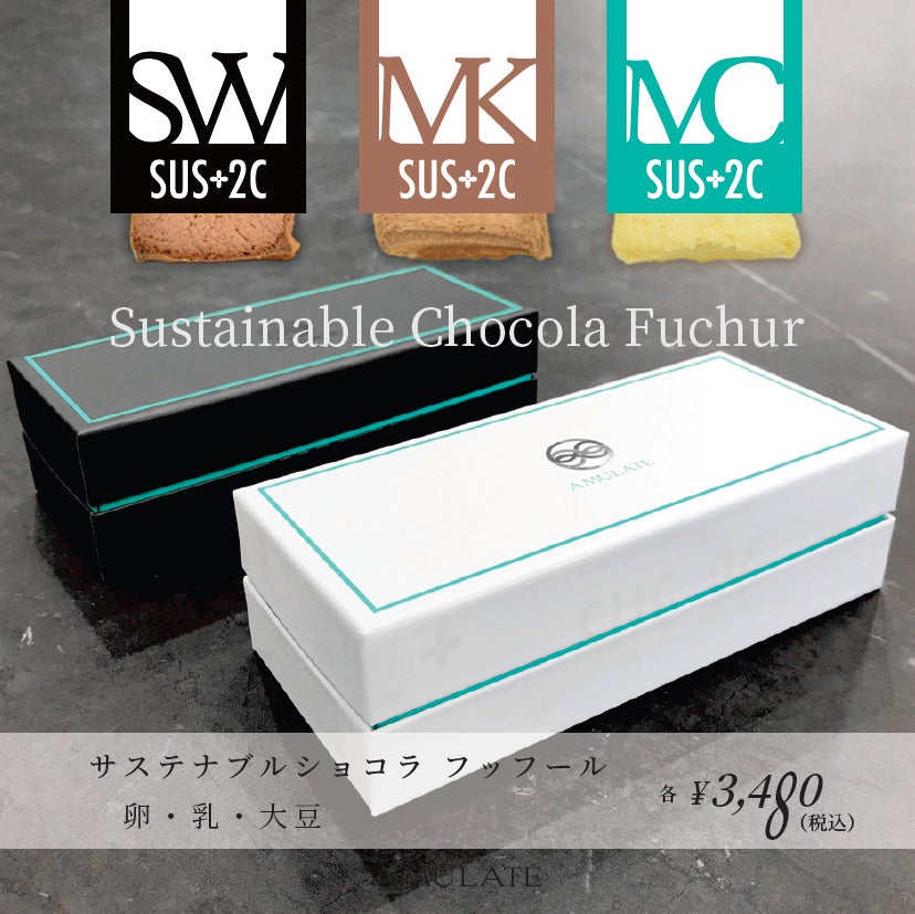 AMULATEが掲げるブランドコンセプト『SUS+2C』には、SUSはサステナブル(Sustainable)、2CはCute(カワイイ)とCool(カッコイイ)の意味と、サステナブルな世界を子どもたちへ届けるという思いが込められております。AMULATEが始めたサステナブルな取り組みはまだ道半ばですが、この思いにお客様が共感し、AMULATEのショコラスイーツを通じて”サステナブル”を始めるきっかけになればと考えております。