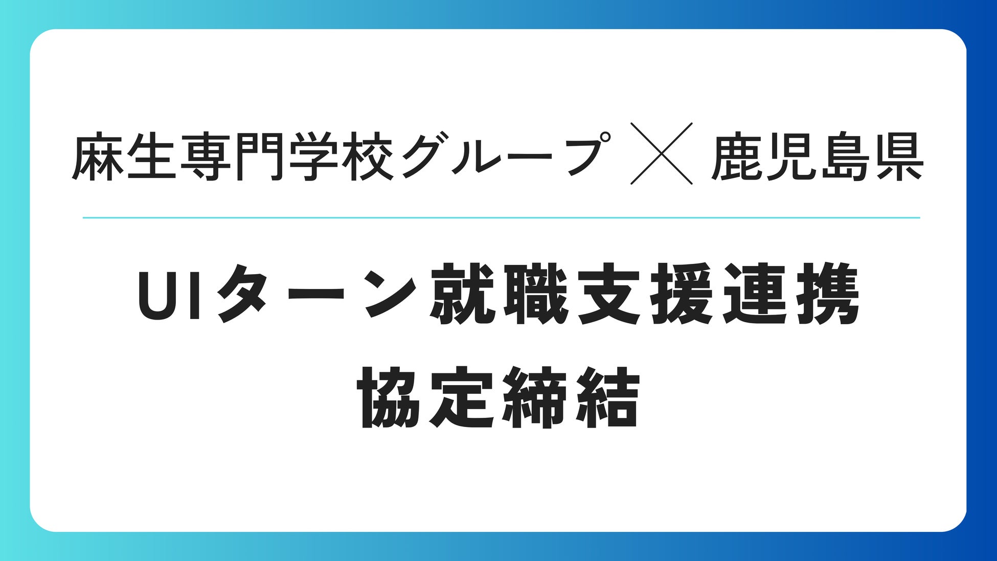 本協定は、学生のUIターン就職活動の支援について、鹿児島県と麻生専門学校グループが相互に連携・協力し、鹿児島県出身の学生を中心にUIターン就職の一層の促進を図ることを目的としています。