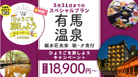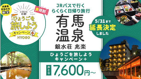 - 兵庫県民限定【往復バスで行く有馬温泉】銀水荘 兆楽 昼食&温泉付き日帰りプラン (ひょうごを旅しようキャンペーン+)