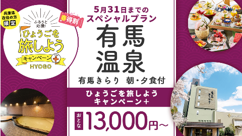 - 兵庫県民限定【往復バスで行く有馬温泉】有馬グランドホテル 昼食&温泉付き日帰りプラン (ひょうごを旅しようキャンペーン+)