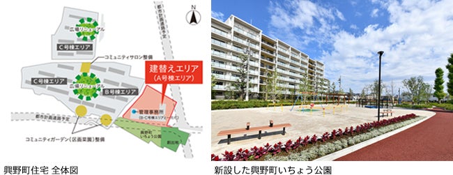 また、建替え対象エリアではないB・C号棟エリアでは、新たなコミュニティサロンの建設や広場のリニューアル、コミュニティガーデン(区画菜園)の整備等を予定しており、より良い住環境づくりを進めています。(以下「興野町住宅 全体図」を参照)