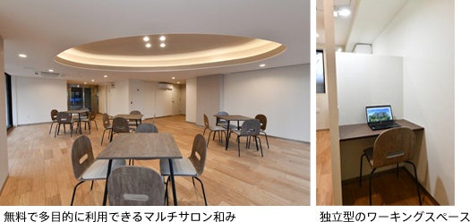 加えて共用設備として、お住まいの方々が無料で多目的に利用できる「マルチサロン和み」を設けました。個別利用が可能な独立型のワーキングスペースを併設し、高速無料Wi-Fiも完備しているため、集中してテレワークや勉強、読書に当たることができます。