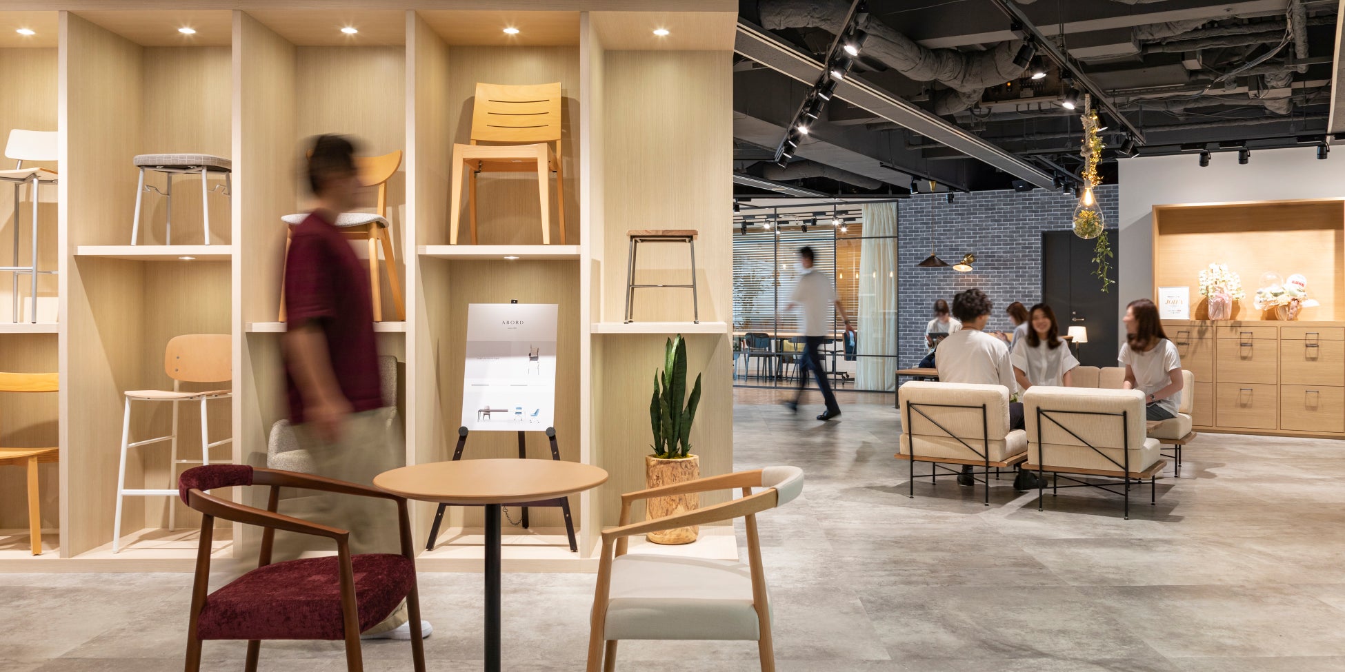実際にプロダクトストーリーを体感いただけるよう、ショールーム・ワークエリアをドローンで撮影し公開しました。各ブランドのプロダクトを回遊するレイアウトを体験できます。