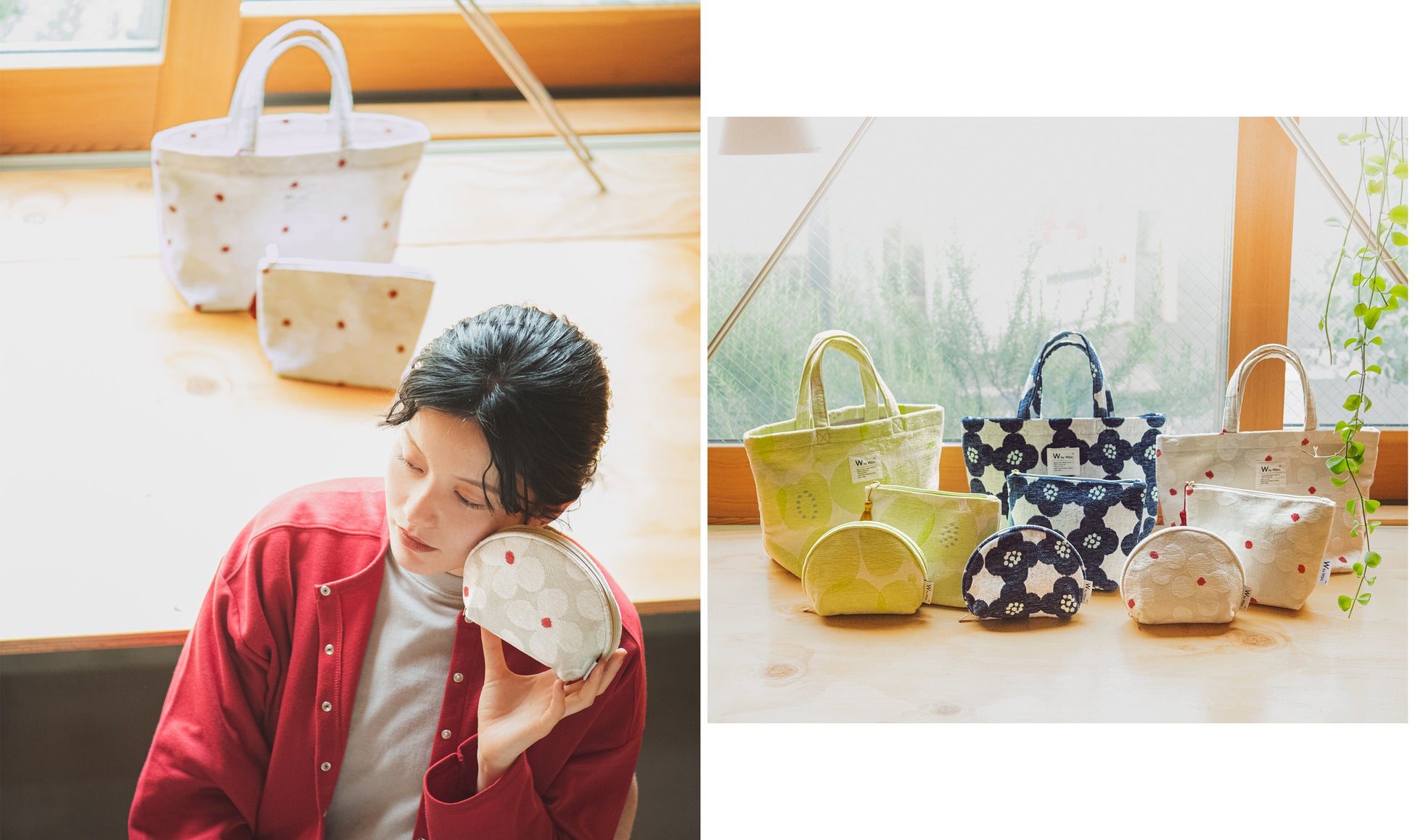高級感のあるゴブラン織を用いたポーチとトートバッグが新たに仲間入り。華やかなデザインも落ち着いた印象になるので、デイリー使いしやすいのがゴブラン織の良さ。ころんとした可愛らしいフォルムに仕上げました。
