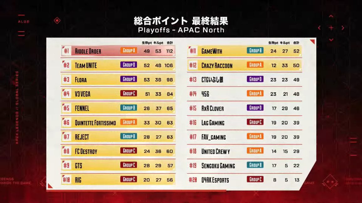 「Apex Legends Global Series」北アジア太平洋大会開幕!レギュラーシーズンに続き2022年最初の王者に輝き10万ドルを獲得したのは韓国のRiddle Order