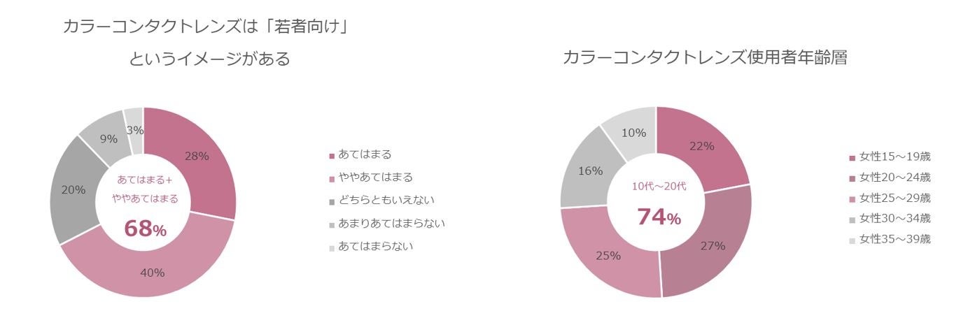 調査によると、約70%の人がカラーコンタクトレンズに対して「若者向け」という印象をいだいており、実際の使用者も約74%は10代~20代という結果です。※1