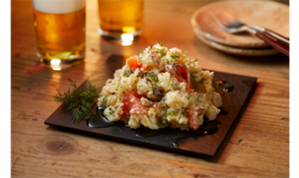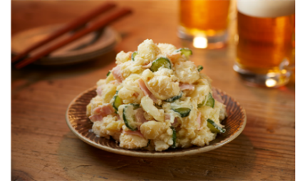発売に先立って実施した調査では、「手作りを想起させる、ゴロゴロとしたじゃがいもの食感」や「素材を強く感じ、味付けがシンプルでもバランスが良い仕上がり」に対して高い評価を受けています。また、手作り品質を実現していることから業務用「十勝ポテトサラダ」<きたあかり>に野菜やお好みの具材を加えるだけで、独自のポテトサラダメニューに仕上げることができます。
