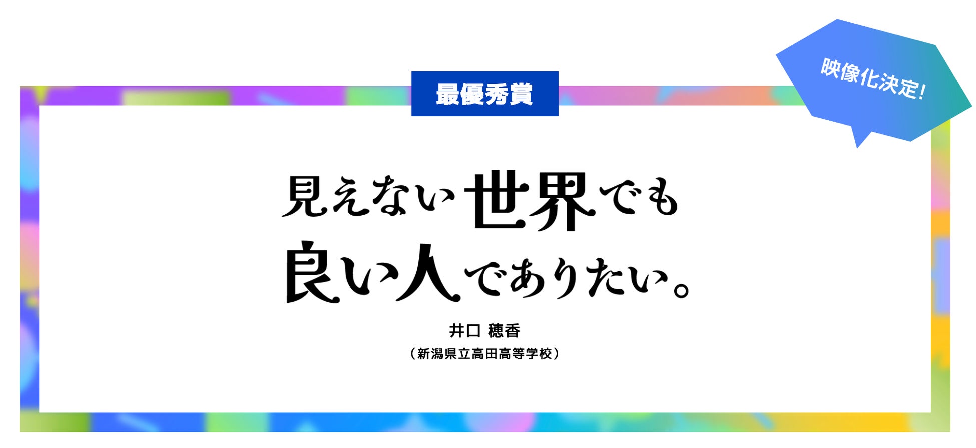 最優秀賞作品は、「見えない世界でも良い人でありたい」。プロのクリエイターによる映像化が決定