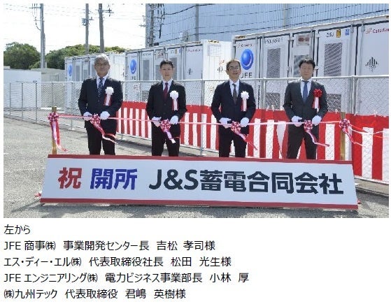 JFEエンジニアリング株式会社(社長:福田 一美、本社:東京都千代田区、以下「当社」)は、エス・ディー・エル株式会社(社長:松田 光生、本社:東京都港区、東京センチュリー株式会社の100%子会社)、JFE商事株式会社(社長:小林 俊文、本社:東京都千代田区)と出資・設立したJ&S蓄電合同会社(本社:神奈川県横浜市)による系統用蓄電池事業(以下、「本事業」)を開始し、事業関係者出席の下、10月18日に開所式典を執り行いました。