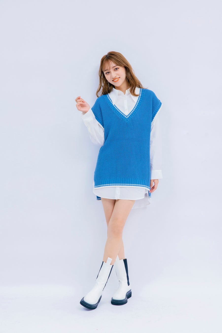ベストは横にスリットが入ってるから重ね着しても着膨れしない万能アイテム。