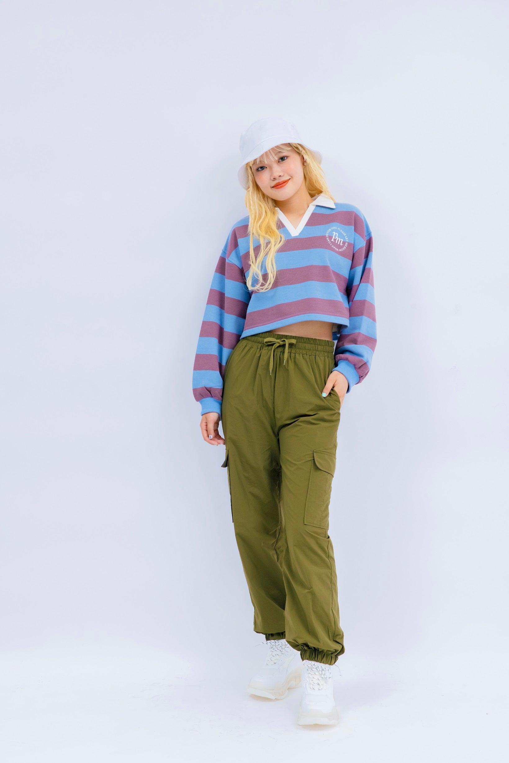 子どもっぽくなりがちの太めのボーダーはオトナっぽい配色でカッコよく。