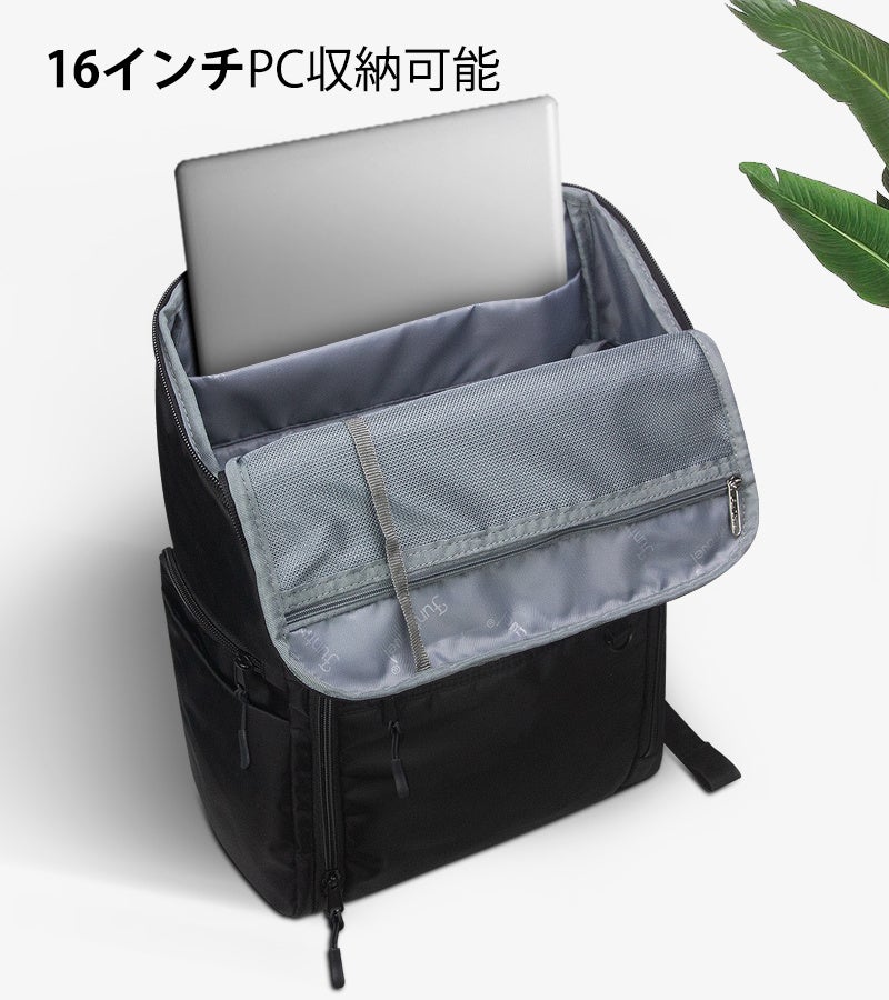 このバックパックにはノートパソコン用の収納ポケットも完備しています。従来は14インチのPCまでしか収納できませんでしたが、現在は16インチまでのノートパソコンを収納することが可能です。出張でも旅行でも重宝すること間違いありません。