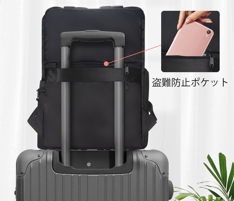 キャリーケースとバックパックを併用することも視野に入れて設計されています。キャリーオンベルトを設置し、キャリーケースに固定して持ち運びすることも可能です。