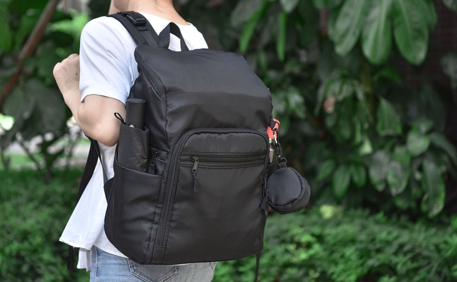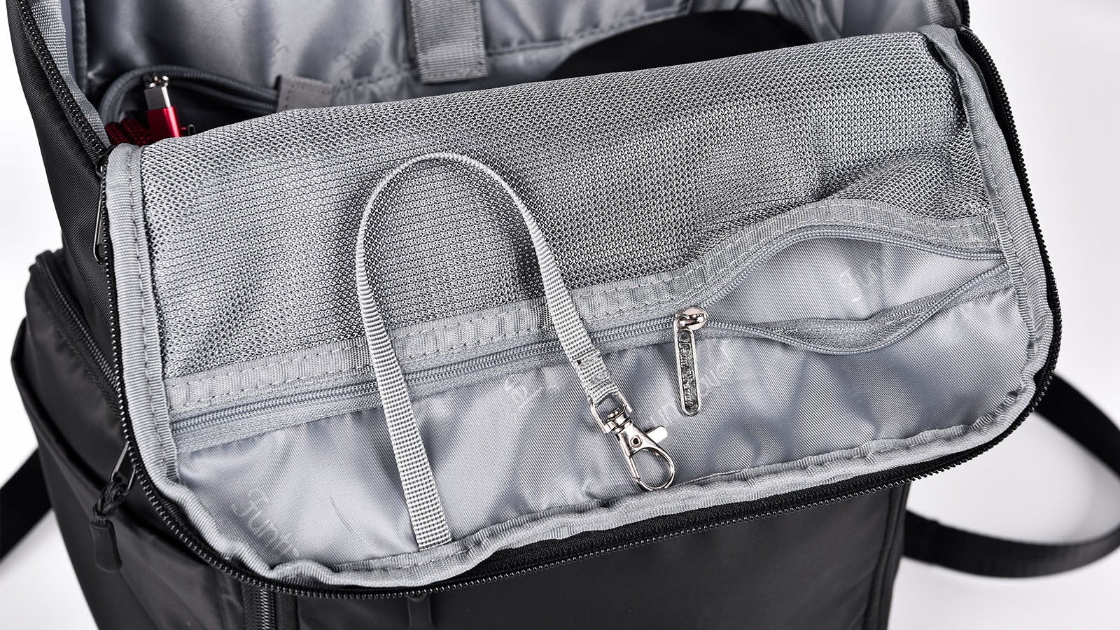 細々としたものを収納するのに便利なサブポケットが配置されています。出張に必要な着替えから、意外とかさ張る充電ケーブル、ノートPC、傘やメガネや名刺ケースなど小物類まで全部スマートに収納できます。