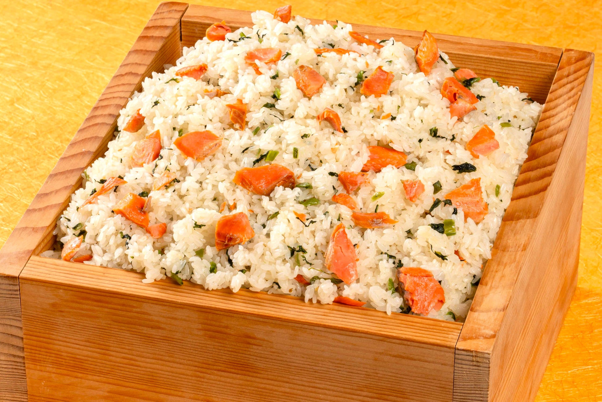 ◇ポイント:粗くほぐした紅鮭をふんだんに使用。野沢菜を一緒に混ぜ込み、後引くおいしさに仕上げています。