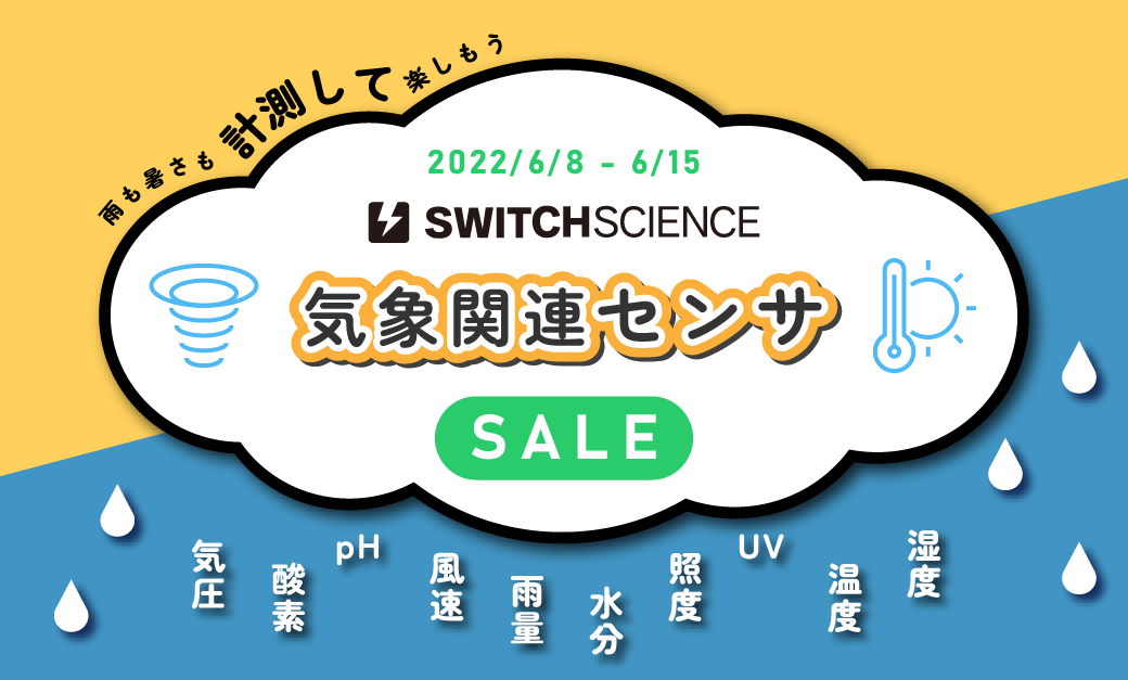 株式会社スイッチサイエンス(以下スイッチサイエンス、本社:東京都新宿区、代表取締役:金本茂)は、スイッチサイエンスウェブショップにて「気象関連セール」を開催します。台風の影響による気圧変化の観測や熱中症対策など、夏季に需要の高い気象関連のセンサを対象にしたセールです。セールの開催期間は、2022年6月8日11時0分より2022年6月15日23時59分まで。