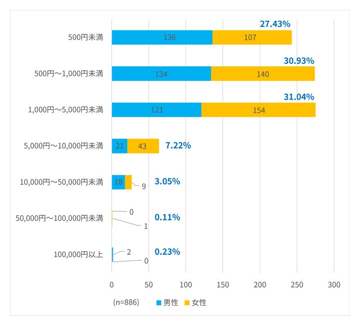 5,000円未満が大半を占めるが、高額ポイントを稼ぐユーザーも一定数存在。