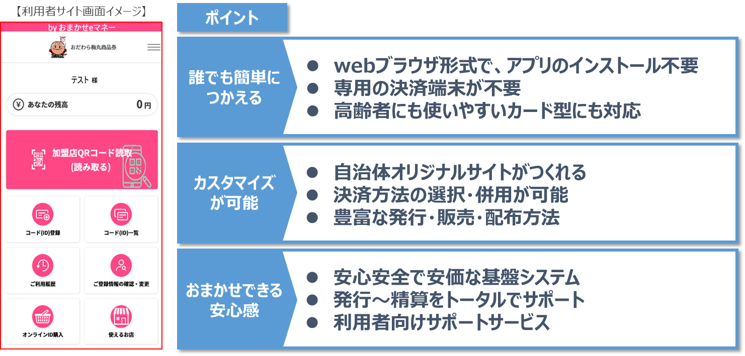 2.デジタル商品券の技術運用を支える「おまかせeマネー」概要