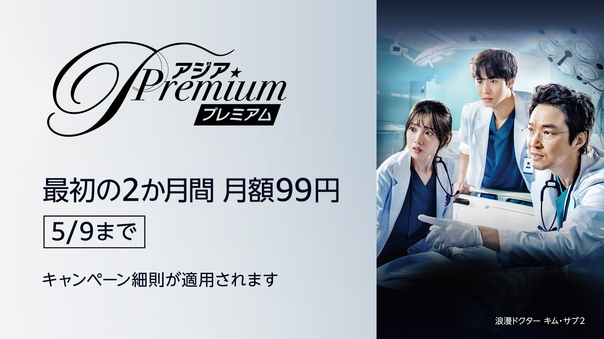 PLAN Kエンタテインメント株式会社(東京都品川区、代表取締役社長 崔相基)は、Amazon Prime Videoチャンネルに開局したアジアコンテンツ専門チャンネル『ドラマ&エンタメ☆アジアPremium』(以下、アジアプレミアム)にて、4月26日(水)~5月9日(火)の期間、新規または再加入でご登録いただいた方を対象に、最初の2ヵ月間・月額99円でお試しいただけるお得なキャンペーンを実施いたします。