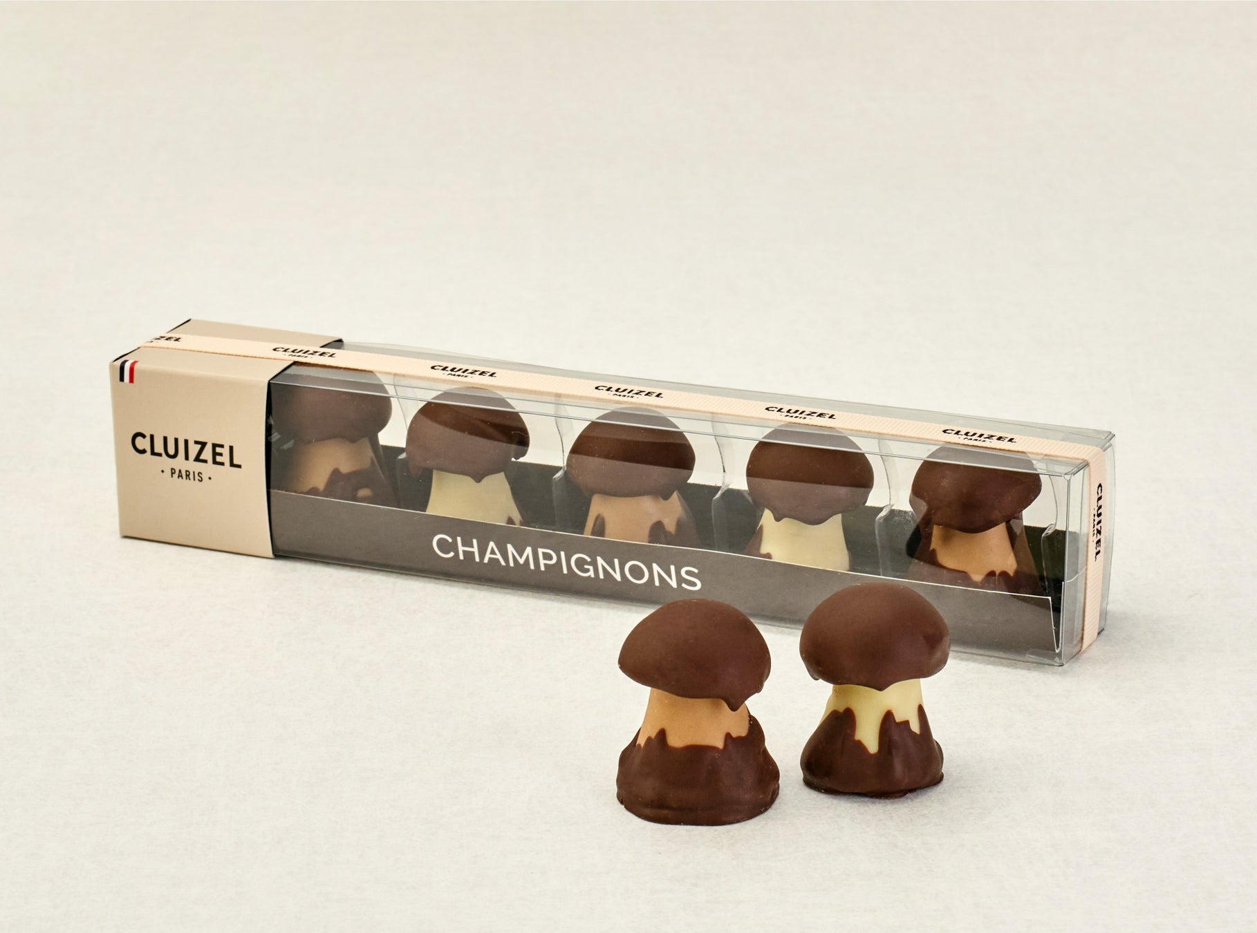 詳細:現オーナーの祖父である初代マーク クルイゼルが考案した、かわいらしいキノコ型のショコラ。50年以上門外不出の特別なレシピで作られています。傘の部分はカリカリ食感の自家製ヌガティーヌをダークショコラでコーティング。幹の部分はモチモチの自家製キャラメルやヘーゼルナッツが香ばしいジャンドゥーヤをしのばせてあります。