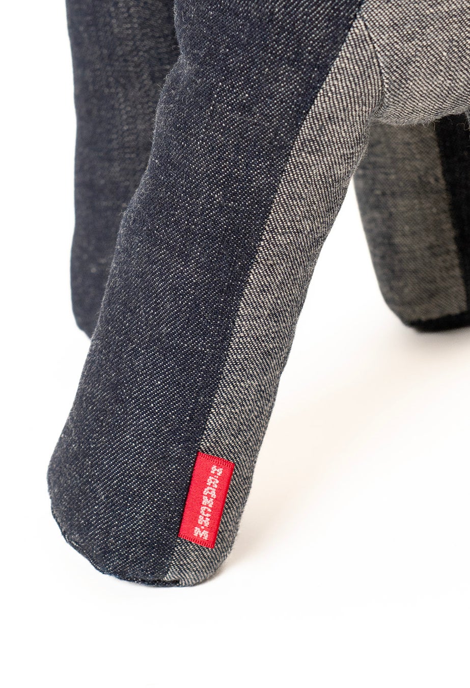 干支モチーフのぬいぐるみは毎年制作しているシリーズで、今回もデニムの切れ端を丁寧に組み合わせたパッチワークを1点ずつ手作業で行いながらも、仕上がりが均一となるよう設計。