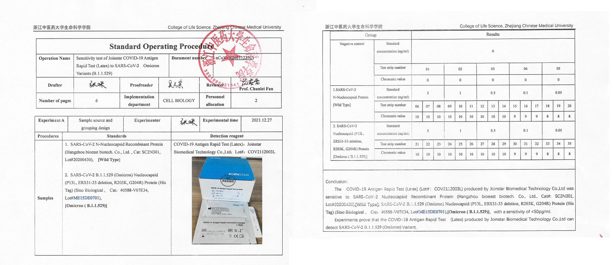 米国特許出願の唾液でできる JOINSTAR社 ラテックス凝集法 抗原検査キット、オミクロン株も検出可能なことを浙江中医薬大学の臨床試験で確認